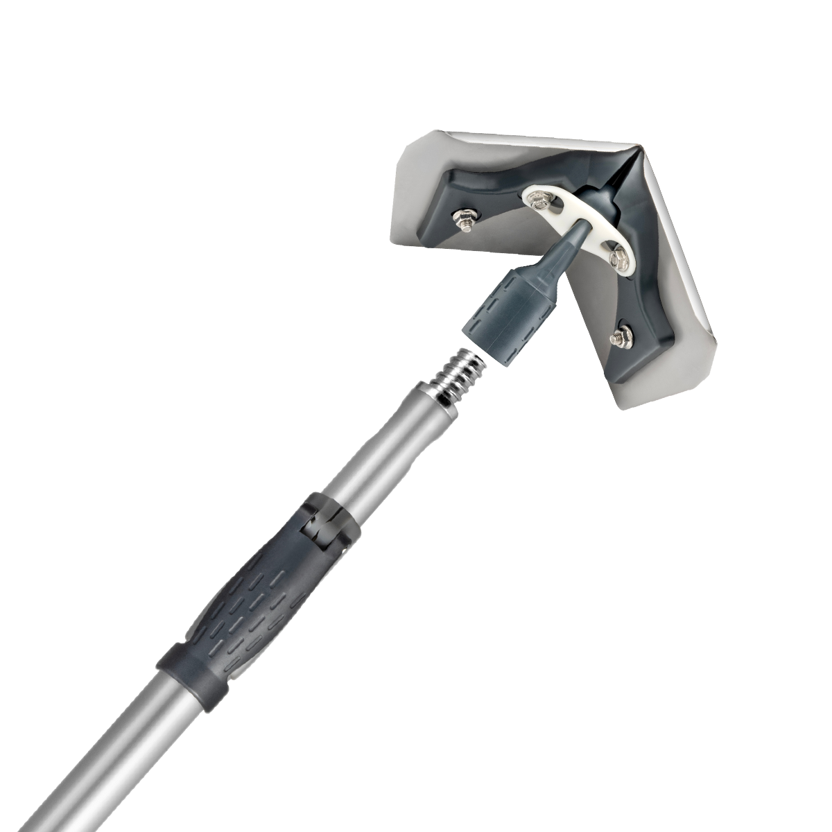 Exclusive patented corner trowel with a rolling ball joint to be mounted onto the special Decoliss extension pole.