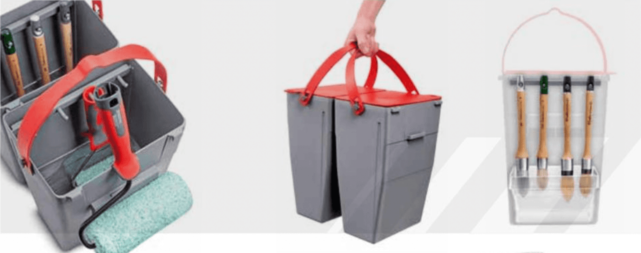 Airproof portable storage box for brushes and rollers preventing the paint from drying out.